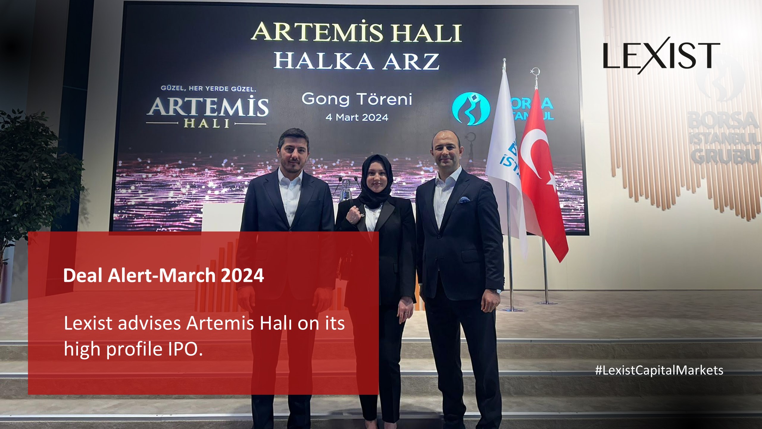 Lexist advised Artemis Halı on its IPO. The Capital Markets team included partners Dr. Murat Erbilen and Mesut KAYA, newly promoted senior associate Sevde Nur Paksoy and associate Miray Sonsuz. For